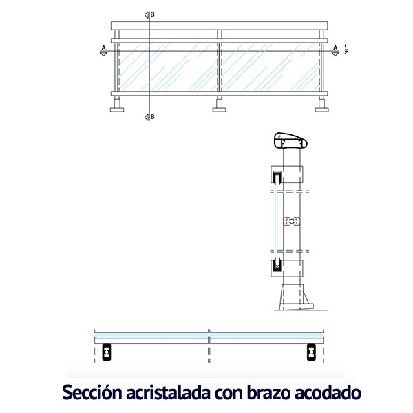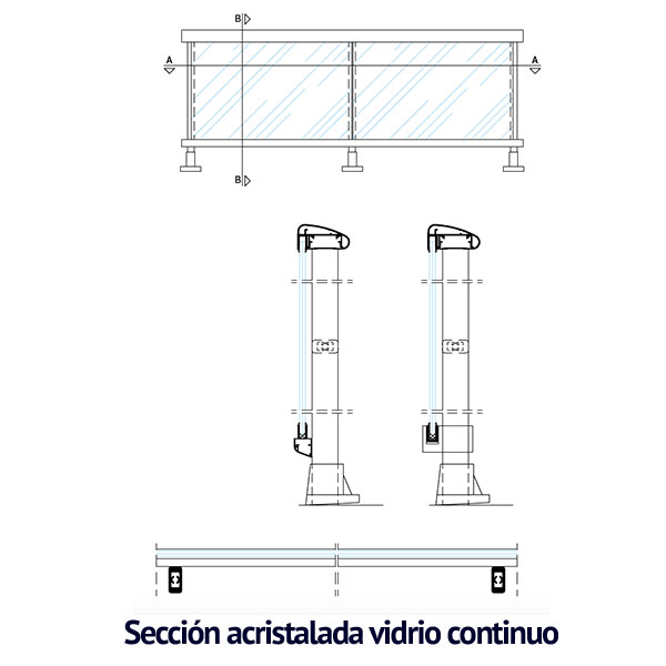 Barandilla acristalada sin marco
